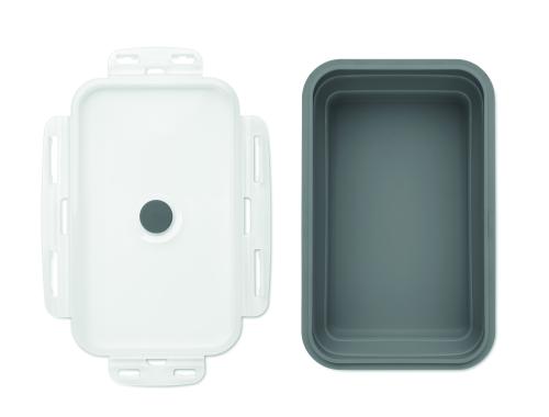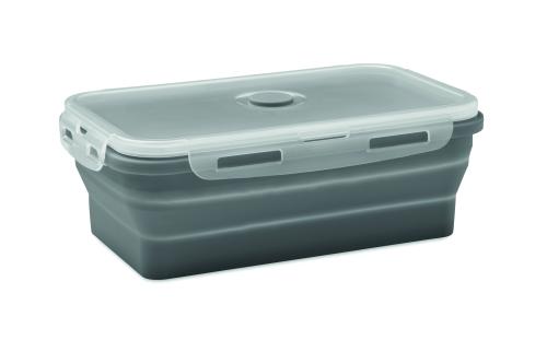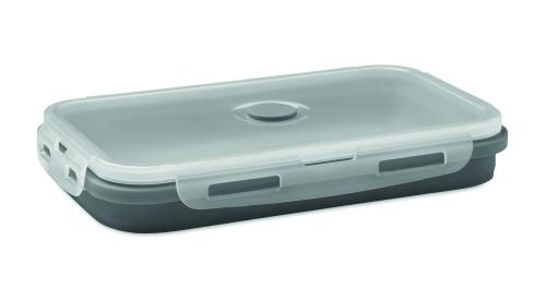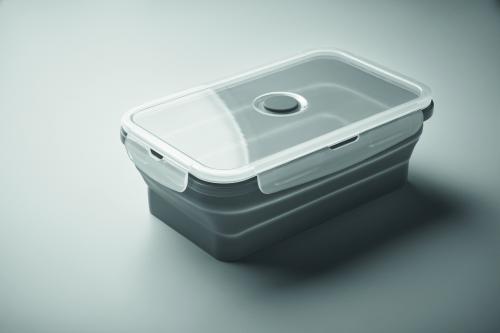 Collapsible silicone lunch box with PP lid and silicone valve. Capacity: 1200 ml.