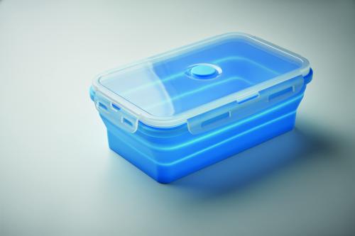 Collapsible silicone lunch box with PP lid and silicone valve. Capacity: 1200 ml.