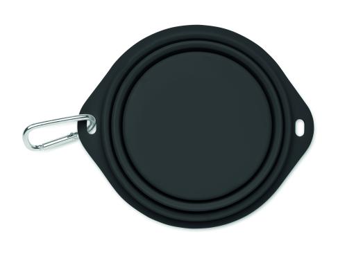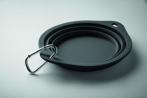 Collapsible portable silicone single drinking or food pet bowl with carabiner. Capacity: 350ml.