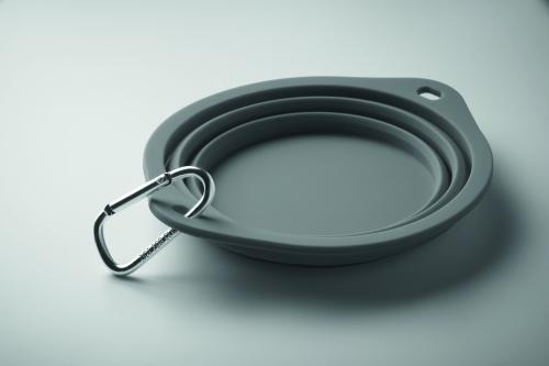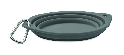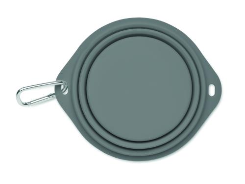 Collapsible portable silicone single drinking or food pet bowl with carabiner. Capacity: 350ml.