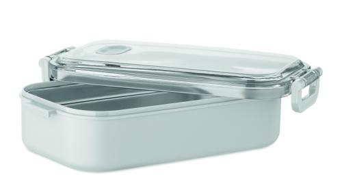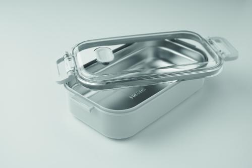 Lunch box made of PP with additional recycled stainless steel inner layer. Airtight AS lid that keeps food fresh and secure during transport. Capacity 750 ml without tray and 650 ml with tray.