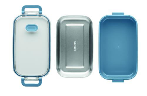 Lunch box made of PP with additional recycled stainless steel inner layer. Airtight AS lid that keeps food fresh and secure during transport. Capacity 750 ml without tray and 650 ml with tray.
