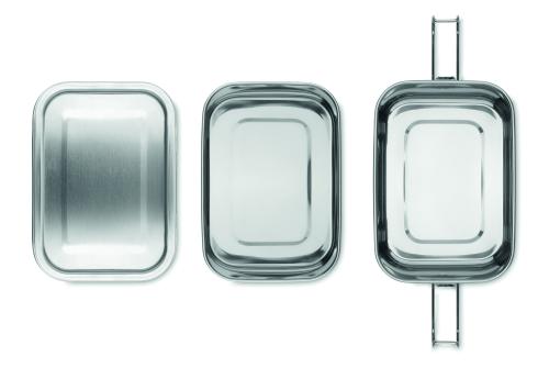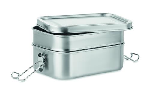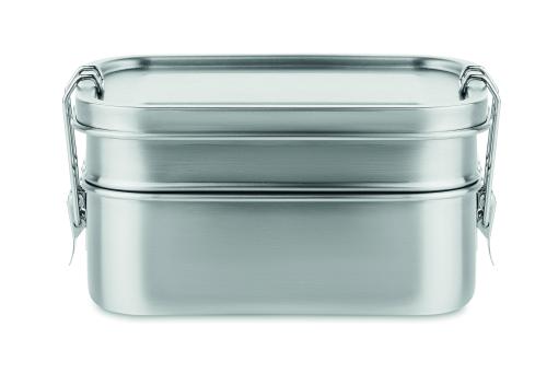 Stainless steel lunch box 2 compartments with strong and secure side buckles. Capacity 1200 ml.