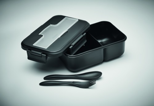 Two-tier PP lunch box with matching cutlery set and a handle.Total capacity : 1000 ml