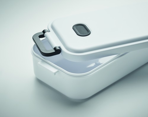 PP lunch box with airtight lid, silicone valve and two side buckles. Capacity: 800 ml.