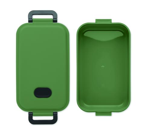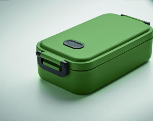 PP lunch box with airtight lid, silicone valve and two side buckles. Capacity: 800 ml.