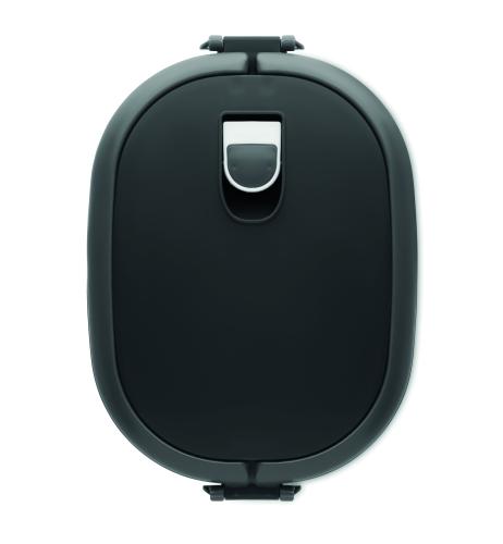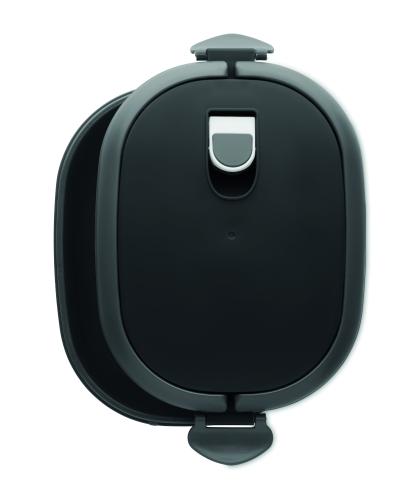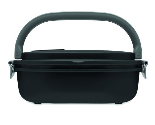 Lunch box with air tight lid made of PP both out side and inside. Microwave and dishwasher safe. Capacity 750 ml.