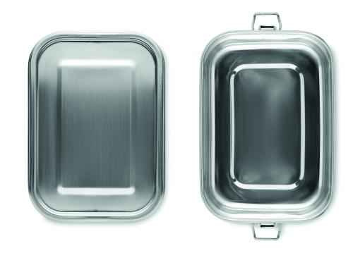 Stainless steel lunch box with strong and secure side buckles. Capacity 750 ml.
