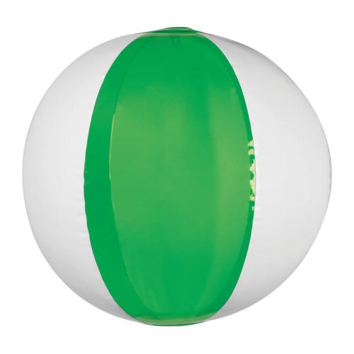 Bicolour beach ball made of PVC with white and coloured-transparent segments.