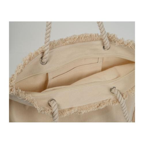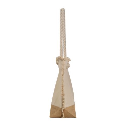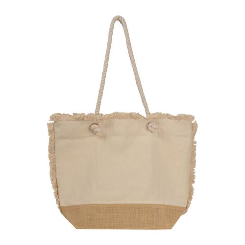 Oeko-Tex ® beach bag made of structured cotton in natural colour with jute bottom and drawstring handle. Perfect for a visit to the beach or outdoor pool.