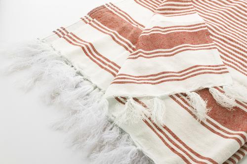 Two-tone striped pareo beach towel in 70% cotton and 30% polyester. 210 g/m².