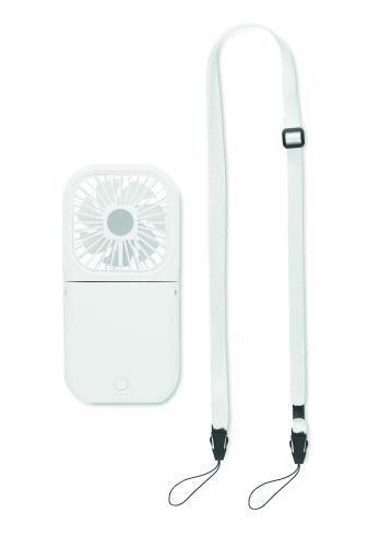 Portable foldable fan with adjustable neck strap. 3 speed settings. Can also be used as desk fan when folded. Including a 3000 mAh power bank. In/Output: Type-C <(>&<)> output type A.
