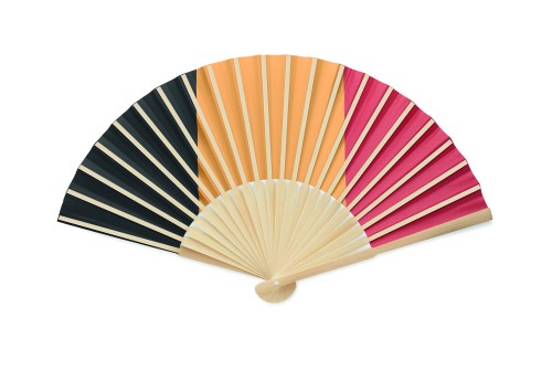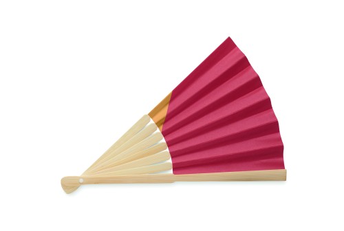 Manual hand fan in bamboo with flag design on paper fabric.