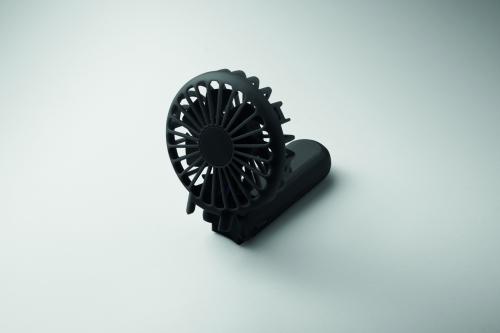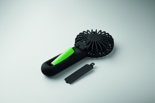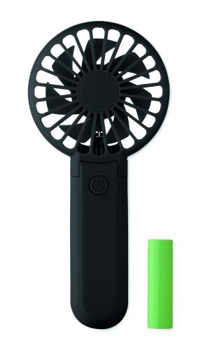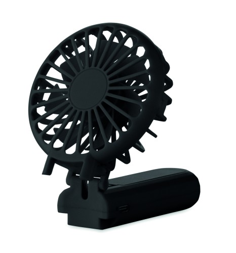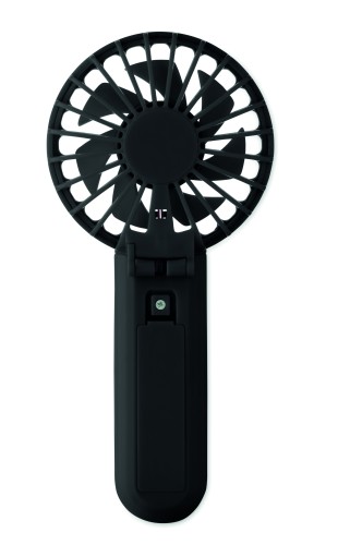 Portable foldable fan in ABS with 3 speed settings. Can be used as handheld or desk fan. Includes 1 replaceable and rechargeable 14500 Lithium battery 500 mAh.