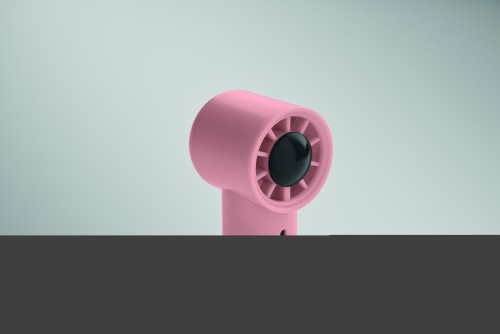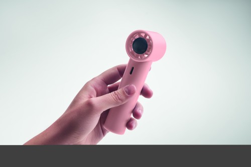 Mini handheld fan in ABS with screen display and 5 speed settings. Includes replaceable 2600mAh rechargeable lithium battery.