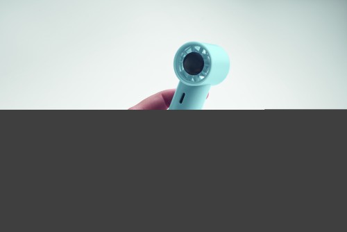Mini handheld fan in ABS with screen display and 5 speed settings. Includes replaceable 2600mAh rechargeable lithium battery.