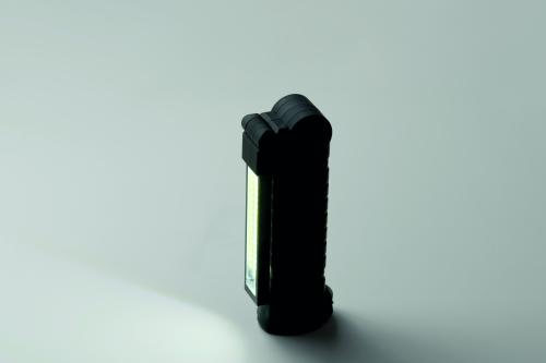 Aluminium rechargeable 1200mAh work light with 270° rotatable body. Features bright inspection light, side COB light with 2 settings, hanging hook and magnetic base. Charging cable included.