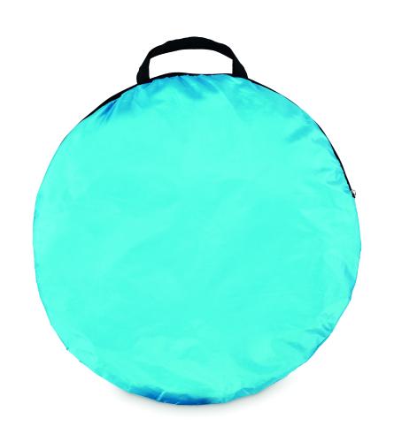Two-person beach tent made of 190T polyester. Includes 6 steel hooks and a matching carry bag. Lightweight and easy to set up. Designed for shade and outdoor comfort.