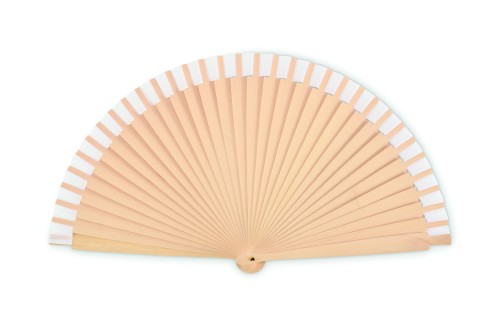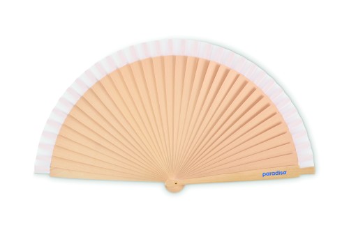 Wooden hand fan made of Schima Superba wood and polyester with 34 ribs. Elegant design.