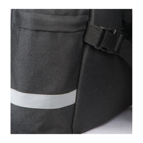 High-quality, large bicycle saddle bag that is attached to the luggage rack. With many functions such as elastic straps and several compartments to stow away.