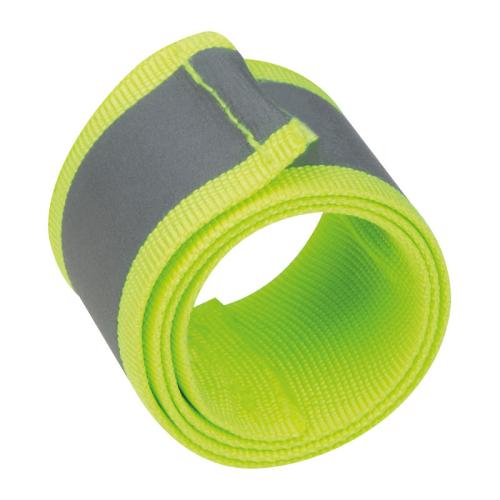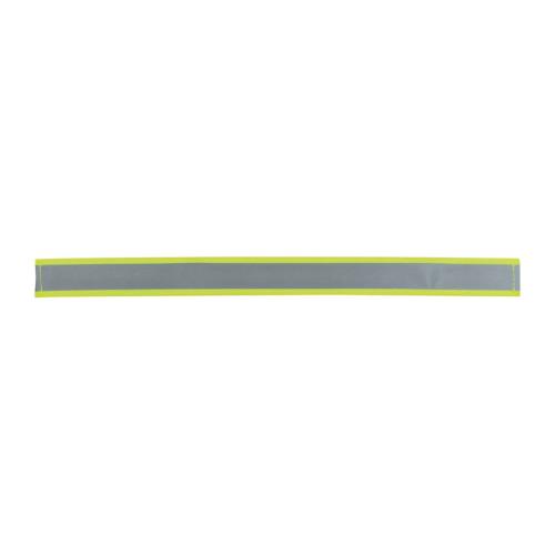 Flexible, reflective safety snap bracelet made of plastic with metal spring.