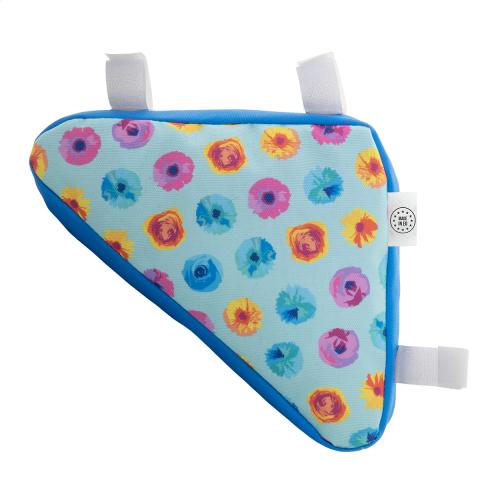 Custom made, zipped bicycle frame bag in 600D RPET polyester with adjustable velcro straps. With all-over sublimation printed graphics and distinctive RPET label. MOQ: 25 pcs.