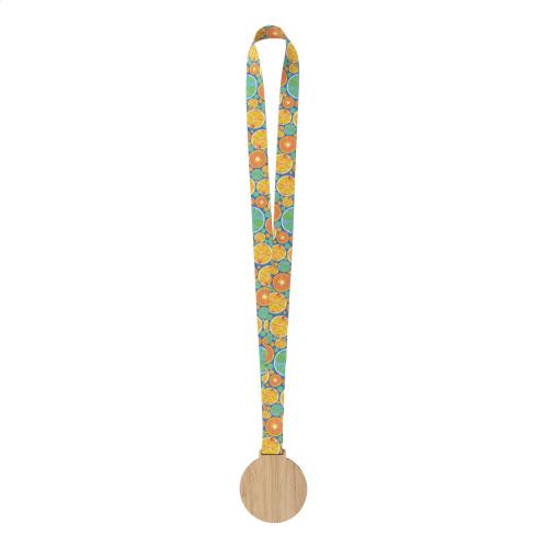 Custom made, bamboo medal on sublimation printed RPET lanyard. Price includes sublimation printing. MOQ: 100 pcs.