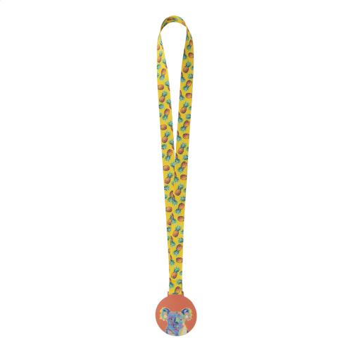 Custom made, acrylic medal with full colour graphics. On sublimation printed RPET lanyard. Price includes sublimation and UV LED printing. MOQ: 100 pcs.