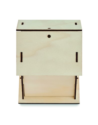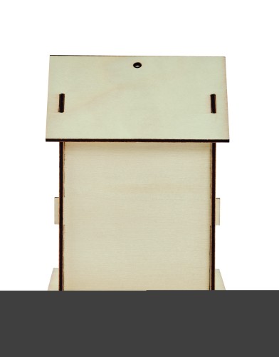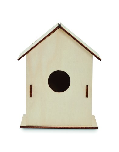DIY wooden birdhouse kit in poplar wood. Includes: 1 brushes and 6 water-based pigments. Pre-cut wooden pieces for self-assembly.
