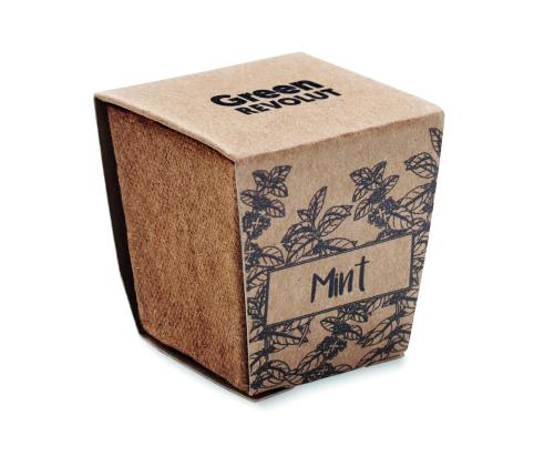 Biodegradable peat pot with mint seeds. Made in EU. Soil tablet included.