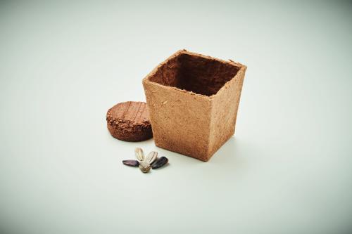 Biodegradable peat pot with sunflower seeds (Helianthus debilis). Made in EU. Not available for sale in the UK. Soil tablet included.