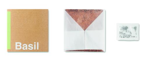 Bag with basil seeds. By adding 300ml water you get 1 litre of garden compost.