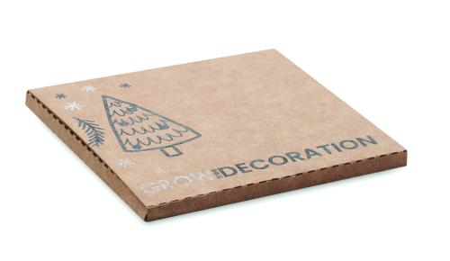 Wooden bauble shaped decoration hanger with jute cord including spruce seeds. Presented in kraft envelope. Made in EU.