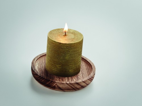 Candle on round wooden base