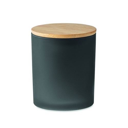 Fragranced plant based wax candle in frosted glass jar holder with bamboo lid. 200 gr. Burn time: 33 hours. Presented in a paper tube gift box. Bamboo is a natural product, there may be slight variations in colour and size per item, which can affect the final decoration outcome.