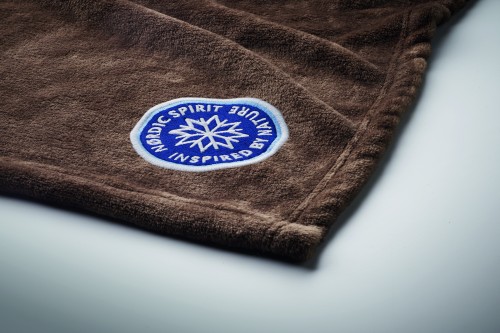 280 gr/m² RPET flannel fleece blanket wrapped in ribbon and printable card.