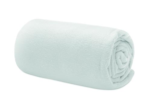 Fleece blanket in RPET with in RPET polyester travel pouch. 180 gr/m² fleece.