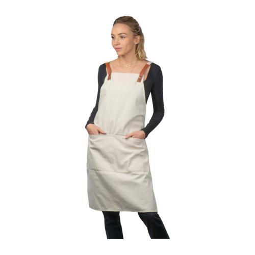 Cooking apron made of cotton (340g/m²) with two front pockets and adjustable straps made of colour-contrasting PU.