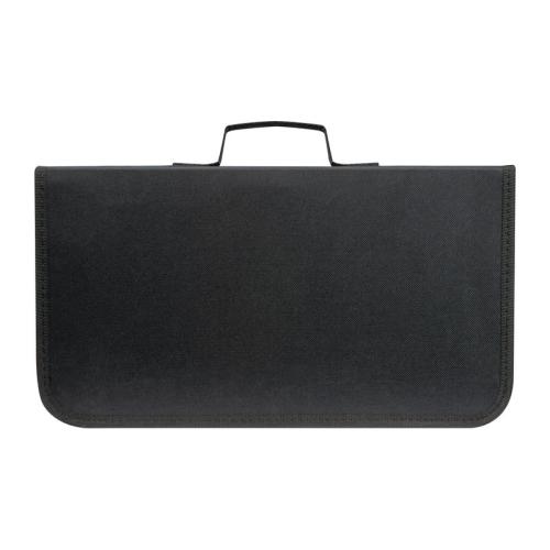 Barbecue set consisting of a large wooden board, two knives with stainless steel blade, barbecue tongs, meat fork and a knife sharpener in a polyester case.
