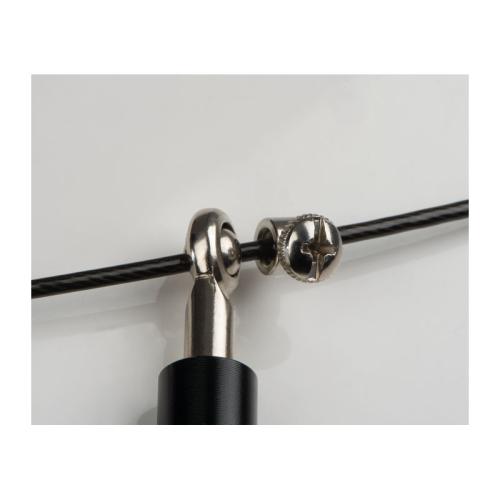Professional skipping rope with ball bearings for fast rotations, individually adjustable lenght, and high-quality stainless steel handles.