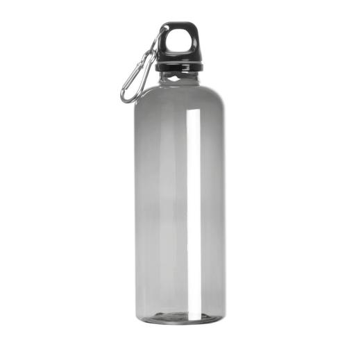 Drinking bottle made of plastic (PET) with leak-proof closure, aluminium carabiner and a capacity of 600 ml.