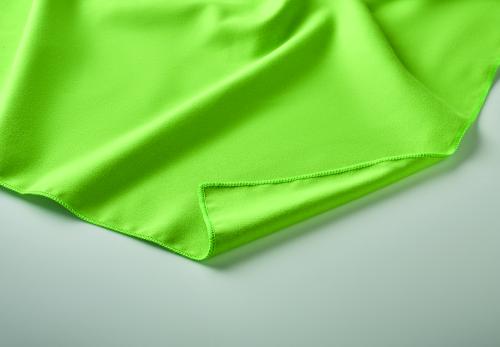 Microfibre towel made of 90% polyester and 10% polyamide with elastic handle. Lightweight and quick drying. Size 50 cm x 100 cm.