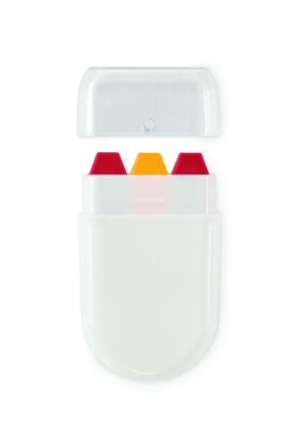 Body paint stick in national flag colours with wax paint in PP case and PS lid.
