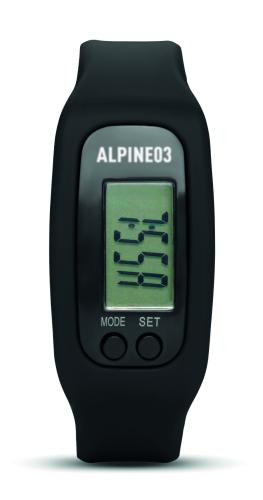 Pedometer bracelet. Includes step, distance, time and calorie counter. 1 AG10 cell battery included.