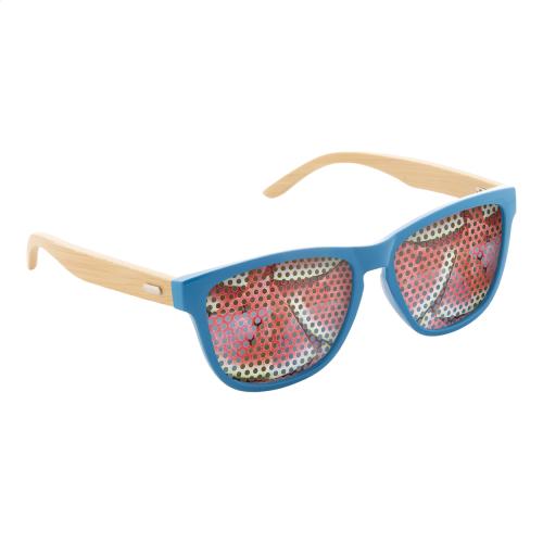 Sunglasses with coloured plastic frame and bamboo temples. With UV 400 protection.