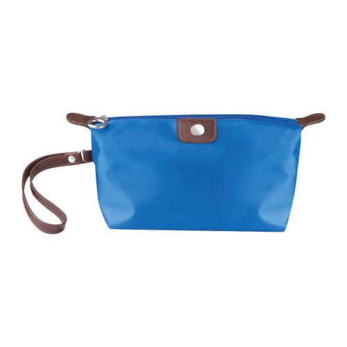 Cosmetic bag with faux leather applications and zipper for closing. Your advertising is printed on the front.