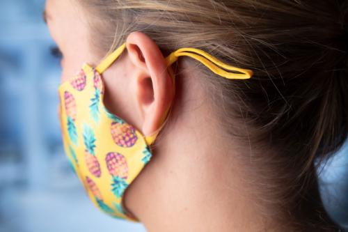 Custom made, washable and reusable two-layer face mask with adjustable elastic earloops and sublimation printed graphics. In adult size. Made of 100% polyester (140gr/m2) and 100% cotton (140 gr/m²) fabrics. Price includes sublimation printing. MOQ: 50 pc.