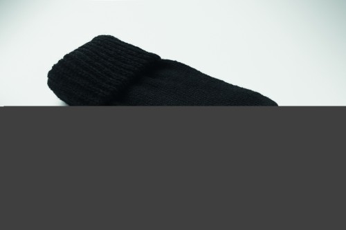 Hand warmer in knitted polyester. Includes instant heat pad in PVC to be activated by pressing the metal plate inside. Reusable by placing pad in hot water.