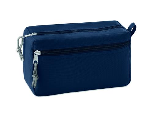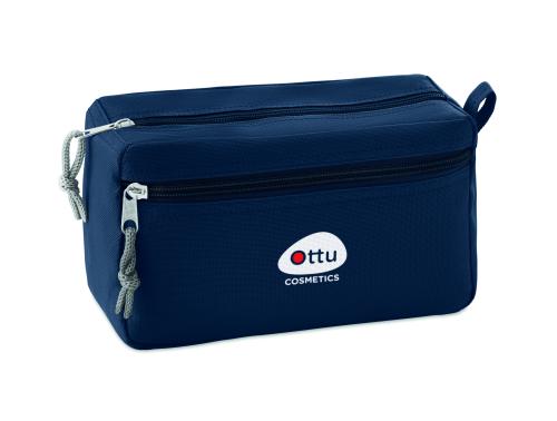 Cosmetic bag with double zipper. 600D polyester with PPE backing.