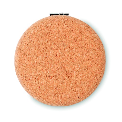 Rounded double sided compact mirror with cork finish cover. Cork is a natural material, due to its structural nature and surface porosity the final print result per item may have deviations.